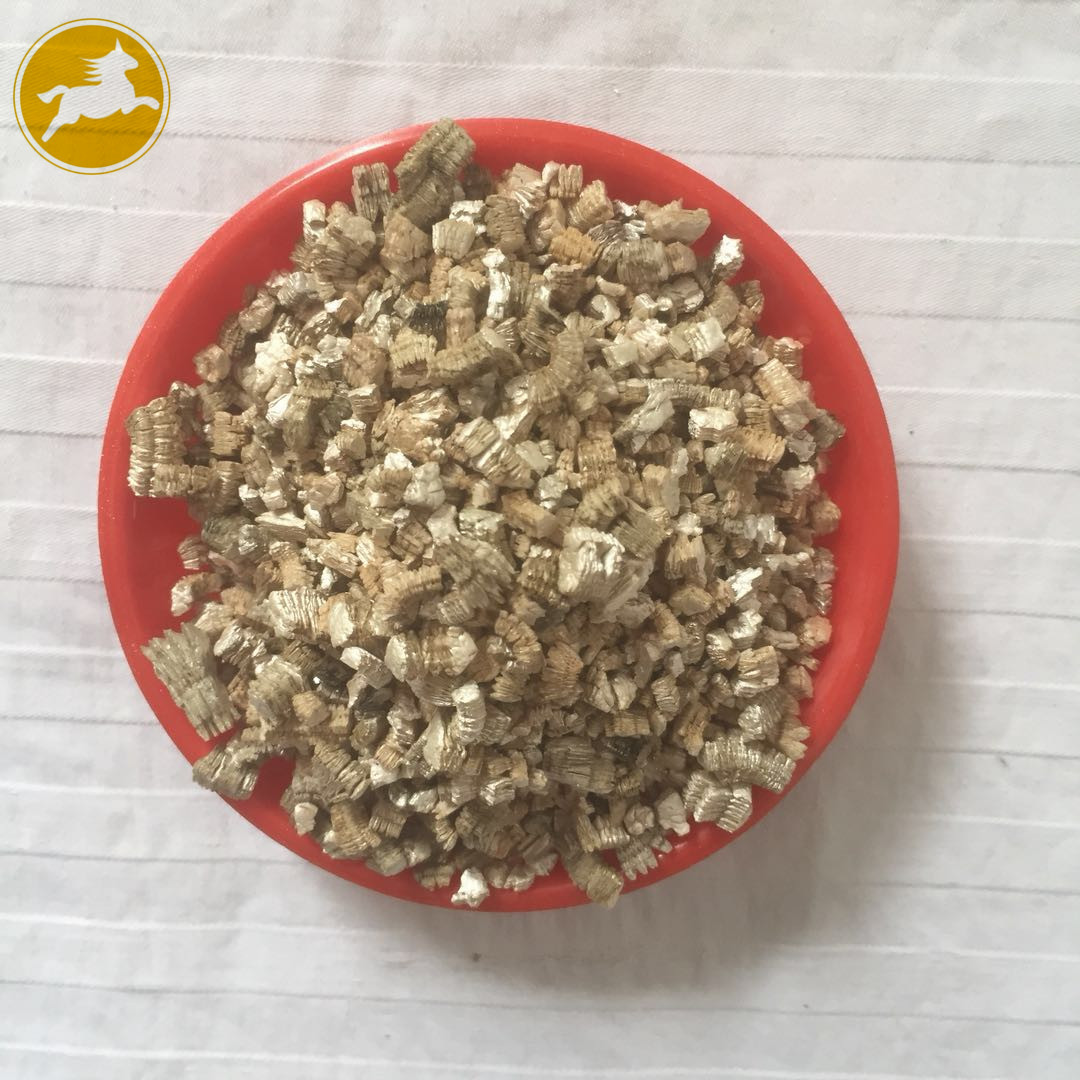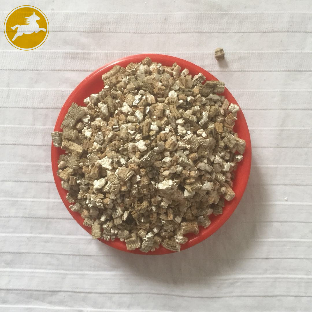 蛭石具有隔熱、耐凍、抗菌、防火、吸水、吸聲等優(yōu)異性能,在800~1000℃下焙燒0.5~1.0分鐘,體積可迅速增大8~15倍,高達30倍。顏色變?yōu)榻瘘S或銀白色,生成一種質(zhì)地疏松的膨脹蛭石,但不耐酸,其介電特性也較差。